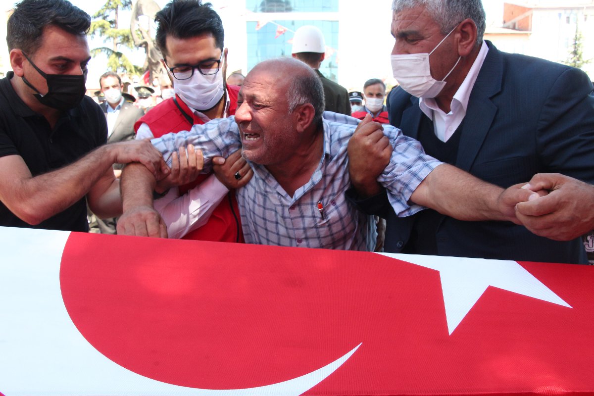 Minik Melih'in, babasının tabutuna dokunması, yürekleri dağladı. Fatma Yiğit ise oğlunun tabutuna sarılarak gözyaşı döktü. Şehit Piyade Uzman Çavuş Muammer Yiğit, ilçe şehitliğinde dualar eşliğinde toprağa verildi.