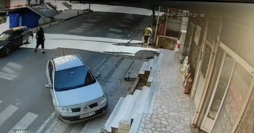 Caddedeki kaza anı, bir iş yerinin güvenlik kamerası aracılığıyla kaydedildi. Görüntülere göre, sürücü park ettiği araçtan iniyor ve bir süre sonra otomobil hareket ederek kaldırımdaki merdivenlere çarptıktan sonra takla atıyor. Kazanın olduğu kaldırımda, olaydan saniyeler öncesinde park halindeki bir aracın ayrıldığı, insanların ve bir kişinin bebek arabasıyla geçtiği de görülüyor. Şans eseri kaza da yaralanan olmazken otomobil de maddi hasar meydana geldi. (DHA)
