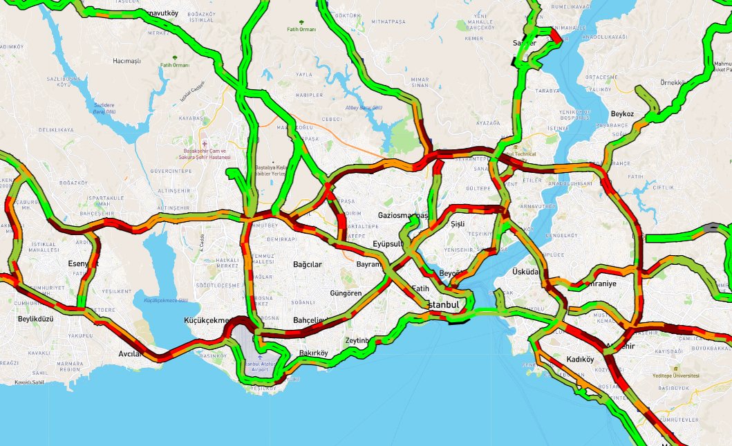 İstanbul Büyükşehir Belediyesi'nin trafik yoğunluk haritasına göre, kentte saat 12.30 sıralarında yoğunluk yüzde 76'ya ulaştı.