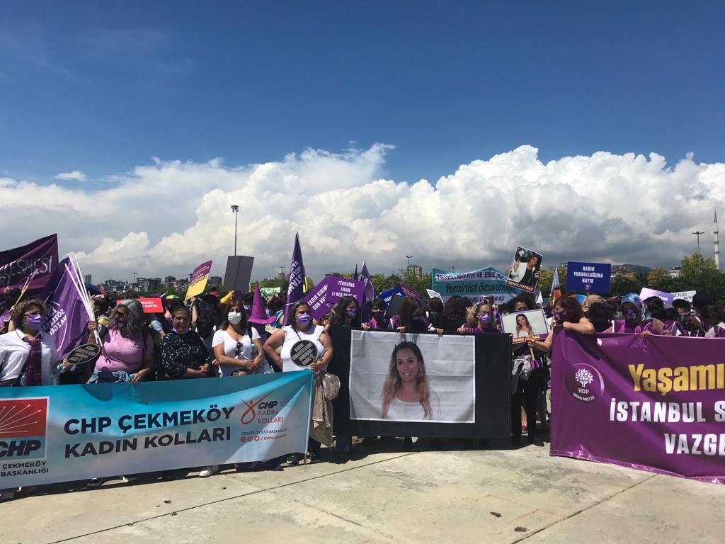 Kadın Cinayetlerini Durduracağız Platformu kurucusu Gülsüm Kav, “Biz aslında İstanbul Sözleşmesi için yıllardır nöbeti sürdürüyoruz öyle değil mi arkadaşlar? Biz 10 senedir yılın her günü adliyelerde, sokaklarda, mücadelenin her alanında hayatımız anlamına gelen bu sözleşmeyi uygulamayanlara inat uygulamak için mücadele verdik. Son bir yıldır Türkiye topraklarında bütün hak ve özgürlüklerin sembolü haline geldi” diye konuştu.