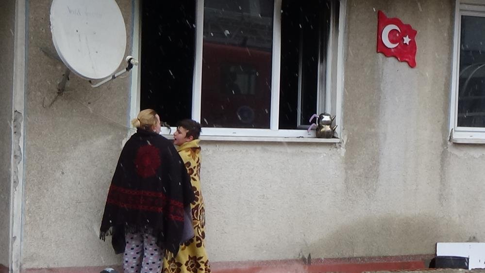 İhbar üzerine itfaiye ekipleri sevk edildi. Evde bulunan anne S.A. ile 3 çocuğu kendilerini dışarı zor attı. İtfaiye ekipleri alev topuna dönen yangını söndürdü. Ev kullanılmaz hale geldi.