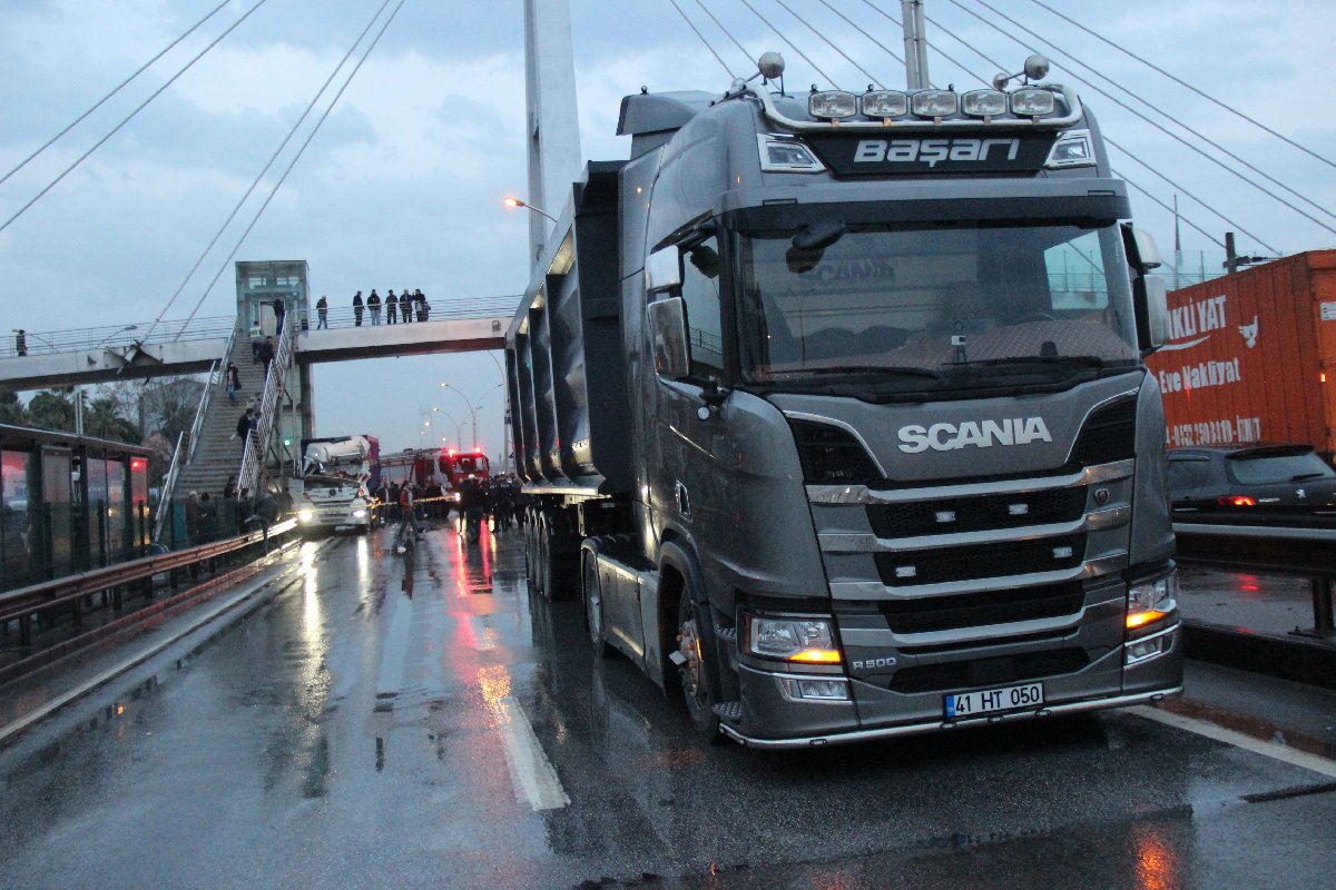 Araç sürücüleri, şahsı ezmemek için ani fren yaptı. Bu esnada İstanbul istikametine gitmekte A.C. yönetimindeki tır, önünde Duran T. K. idaresindeki demir yüklü tıra arkadan çarptı. A.C. tırda sıkışırken, durumu gören vatandaşların ihbarı üzerine olay yerine sağlık, polis ve itfaiye ekipleri sevk edildi.
