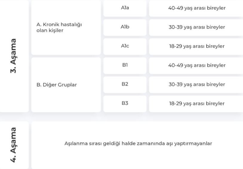Sağlık Bakanlığı aşı olacak grupların detaylarını covid19asi.saglik.gov.tr sayfasında şablon olarak paylaştı;