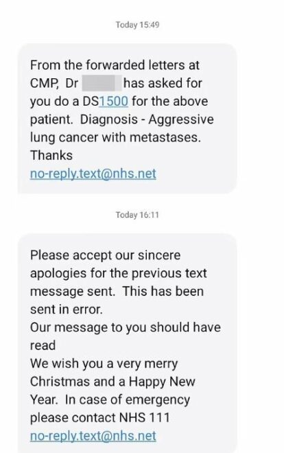 Sun'ın haberine göre, gönderilen kısa mesaj, gerçekten akciğer kanseri test sonuçlarını bekleyenler de dahil olmak üzere tüm hastalara sahte teşhis koydu.