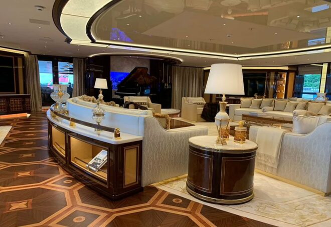 140 metrelik lüks yat, Eylül ayından bu yana İtalya'nın Marina di Carrara limanında bakımdaydı. Yat, iki helikopter pistine sahip ve 18 misafir, 40 mürettebat ağırlayabiliyor.