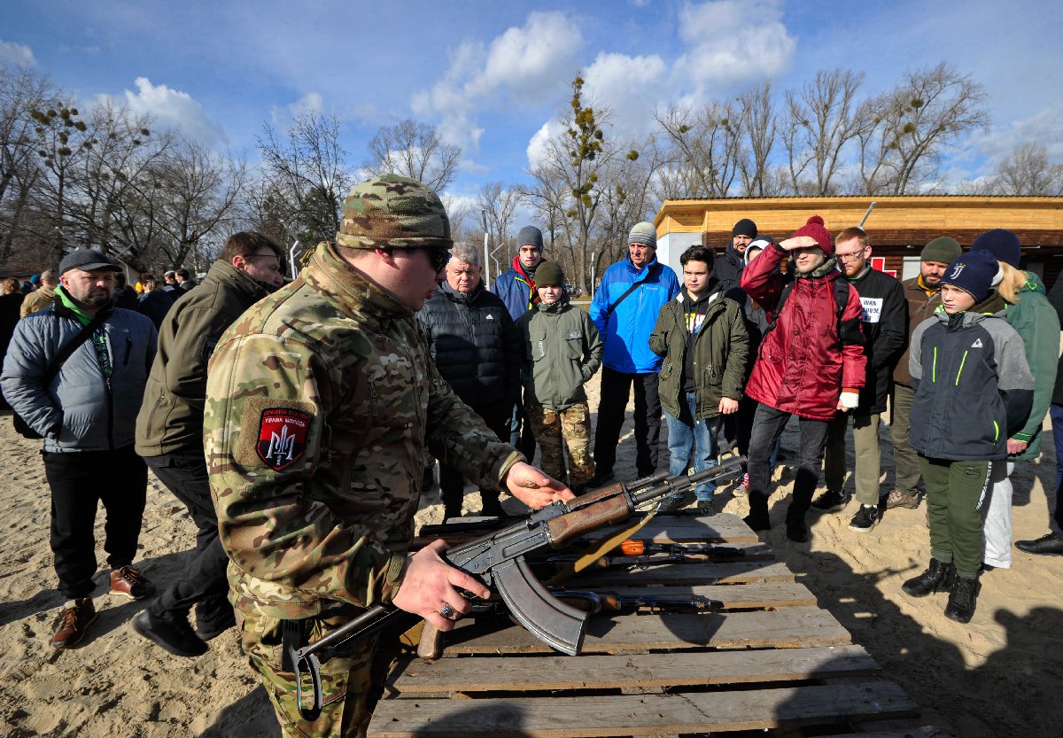 Kiev'de halka açık yapılan askeri eğitimde silah ve mühimmat kullanımına ilişkin bilgi verildi. Eğitime çocuk ve yaşlıların da gönüllü olarak yer aldığı katıldığı belirtilirken askere katılmaya elverişli yetişkinler de savaş hazırlıklarına devam etti.
