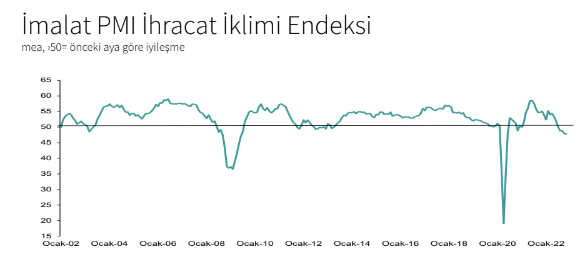 Harker, "Avrupa ve ABD’de ekonomik aktivite daralırken Orta Doğu’da talebin gösterdiği iyileşme bu durumu kısmen telafi etmeyi sürdürdü. Bununla birlikte, Türk imalatçıları bazı önemli ihracat pazarlarında yaşanan küçülmelerin derinliği nedeniyle bir süre daha yeni sipariş talebi yönünden zorlanmaya devam edecek gibi görünüyor" dedi.