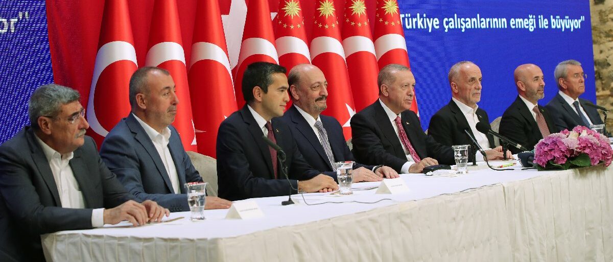 Cumhurbaşkanı Erdoğan'ın yeni asgari ücreti açıkladığı toplantıya Çalışma ve Sosyal Güvenlik Bakanı Vedat Bilgin, Türkiye İşçi Sendikaları Konfederasyonu (TÜRK-İŞ) Genel Başkanı Ergün Atalay ve Türkiye İşveren Sendikaları Konfederasyonu (TİSK) Yönetim Kurulu Başkanı Özgür Burak Akkol da katıldı.
