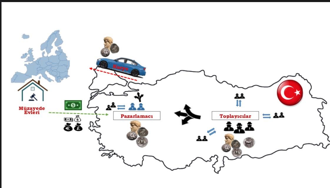 Tarihi eserlerin, suç grubunun lideri konumunda olan 'pazarlamacı' olarak tabir edilen şüpheli tarafından yurt dışındaki müzayede evlerinde kuryeler aracılığıyla gönderilerek satıldığı saptandı.