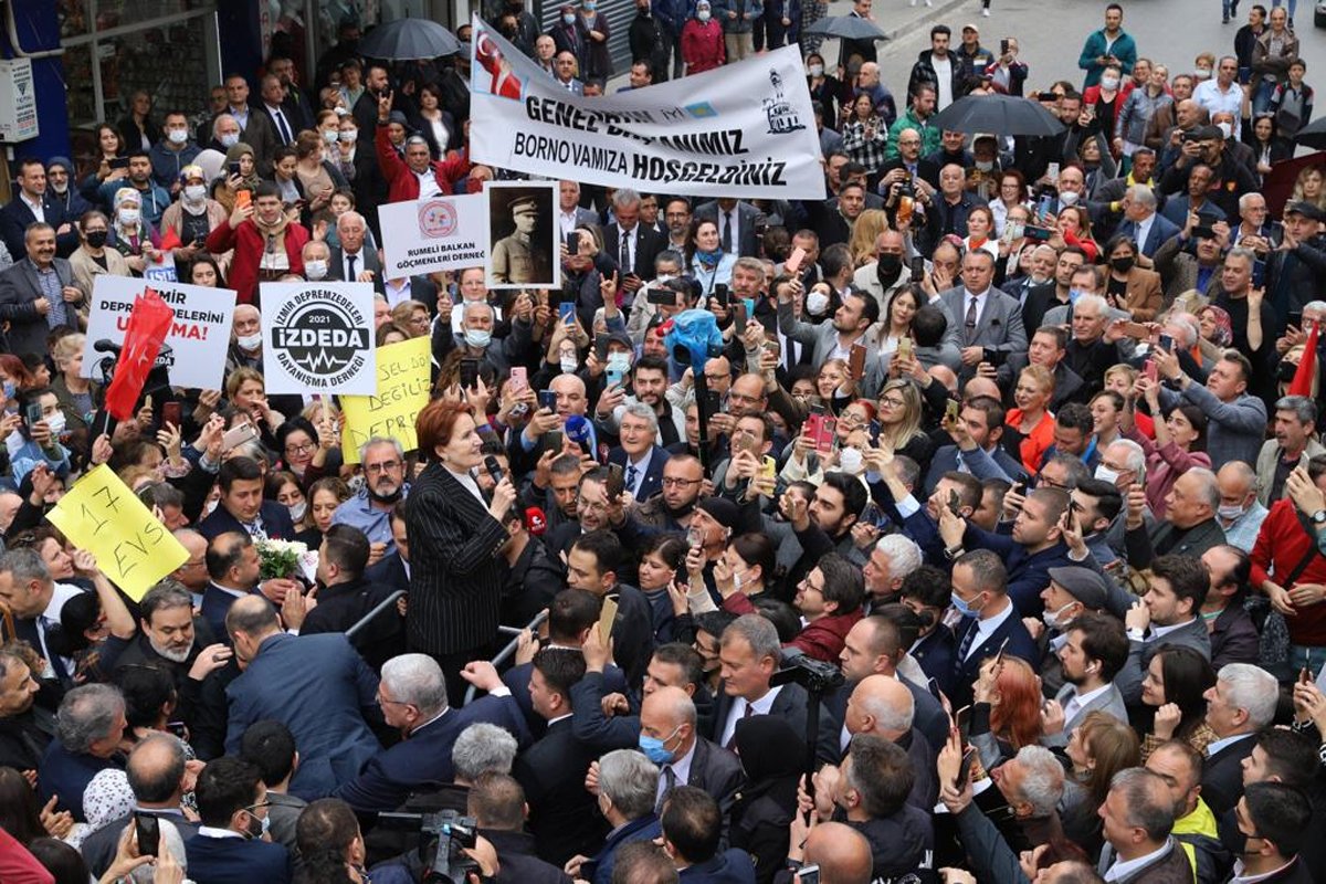İnsanların ayrıştırıldığını vurgulayan Akşener, "Komşuyu komşuya düşman ettiler. Kim kârlı çıktı? 5 maaş alanlar, 314 bin lira maaş alan bakan yardımcıları, 11 maaş alan müdürler... Yani 'Aksırıncıya-tıksırıncaya kadar ye' formülünde yer alanlar kazandı, seçmen kaybetti. Haram zıkkım olsun ama esas haram zıkkımı sandıkta yapacağız. Sandıkta helal oylarınız ve demokrasi ile bu arkadaşları attaya göndereceğiz. Bu harami düzeni el ele vererek birlikte yıkacağız" açıklamasında bulundu.