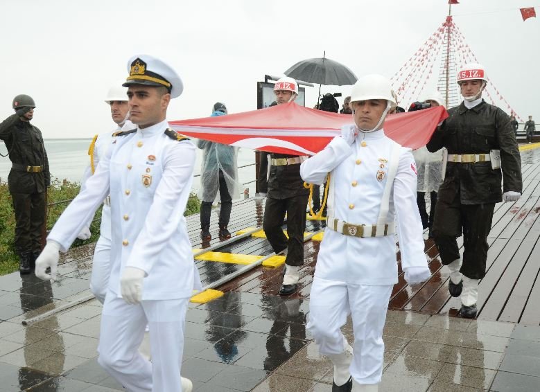 19 Mayıs 1919'da Atatürk'ün Kurtuluş Mücadelesi'ni başlatmak üzere Samsun'a ilk adımını attığı yer olan Tütün İskelesi'nde Atatürk'ün karaya çıkışını temsil eden Türk bayrağı, askerler tarafından karaya çıkarıldı.