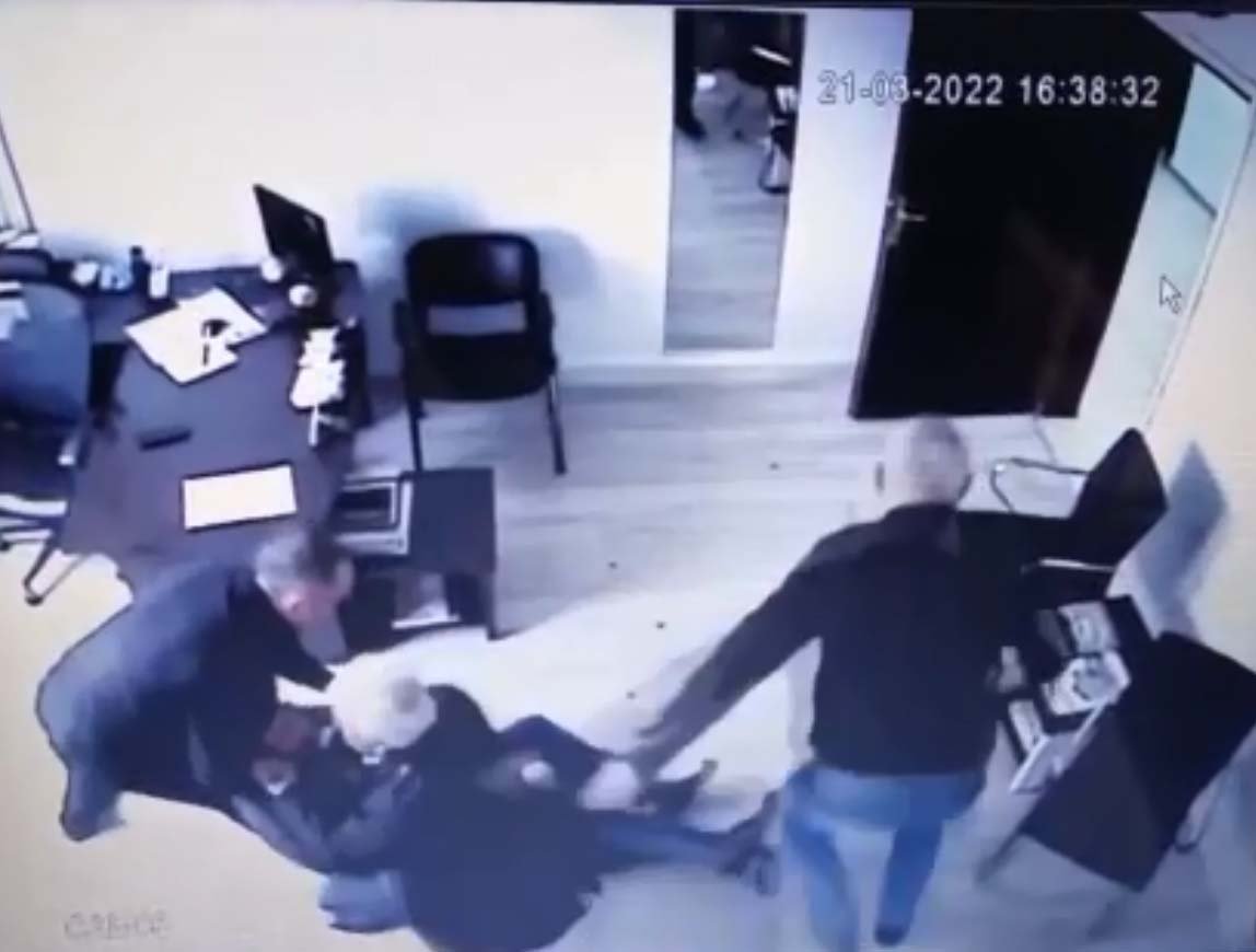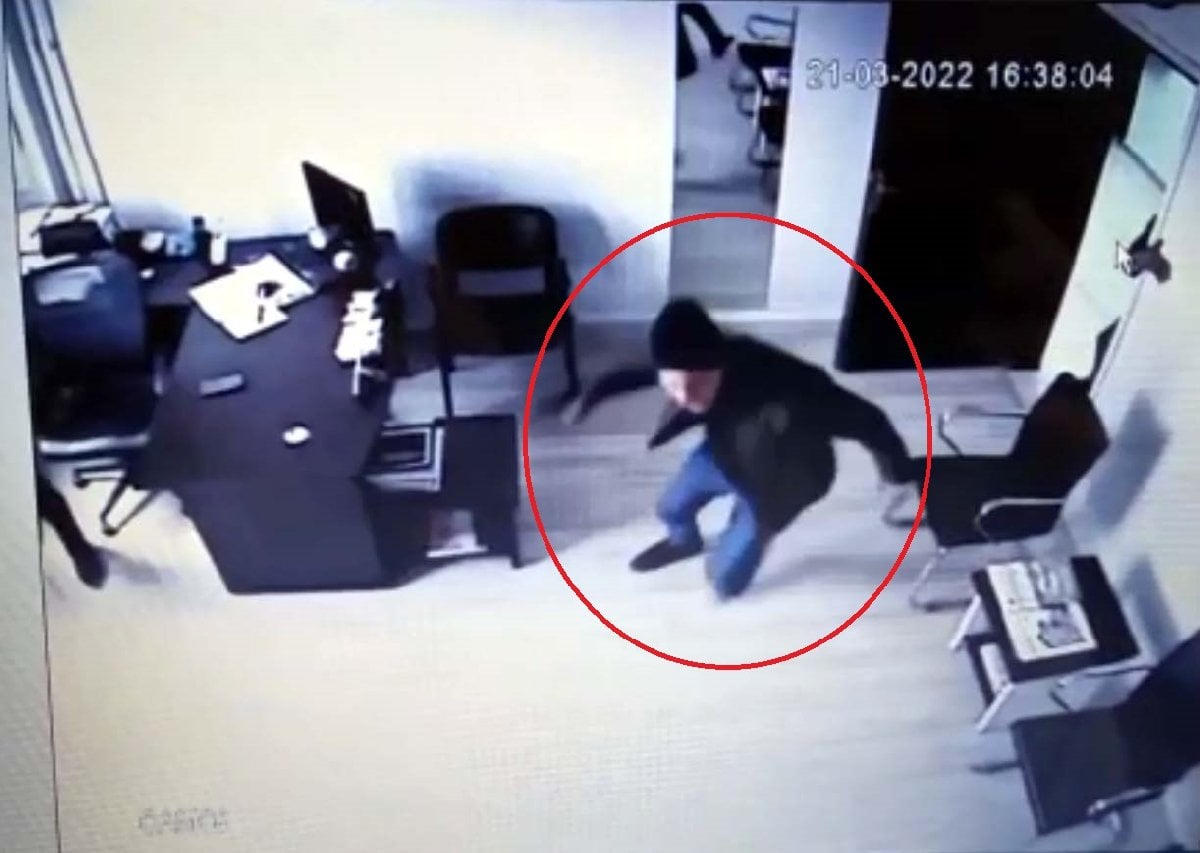 Emre D.'nin silahla sekreterliğe girip makam odasına yöneldiği, bu sırada görevliler tarafından yaşanan arbede sonucu etkisiz hale getirildiği görülüyor. Olaya ilişkin başlatılan soruşturma sürüyor. (DHA)