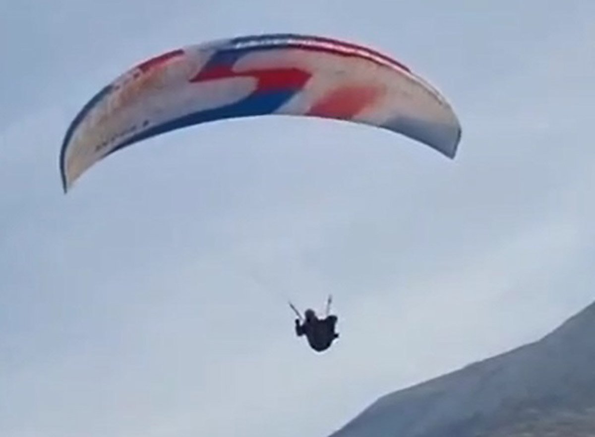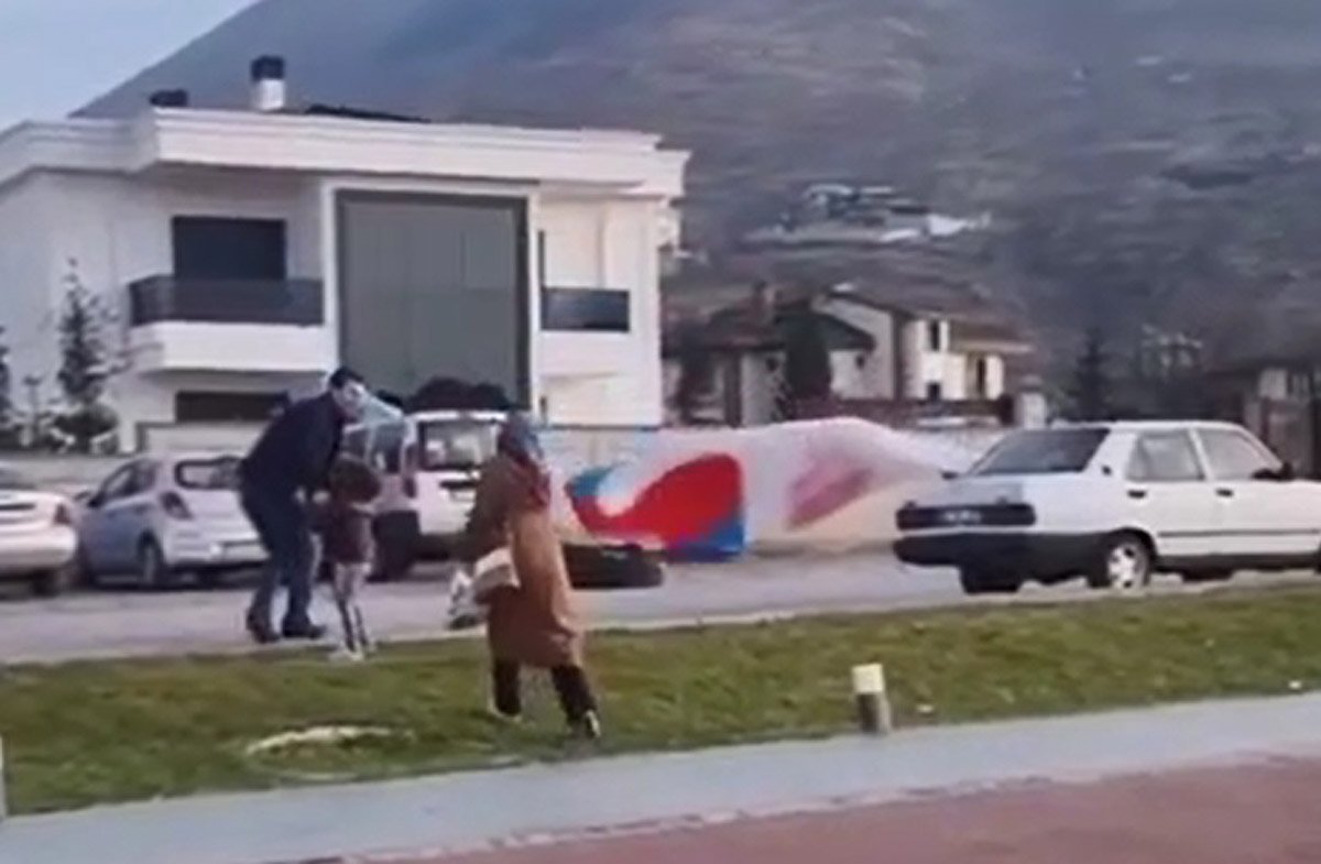 Öte yandan, yaşanan o anlar ise cep telefonu kamerası ile kaydedildi. Görüntülerde; paraşütçünün iniş yapacağı sırada dengesini kaybederek, yaklaşık 15 metre yükseklikten düştüğü anlar yer aldı.