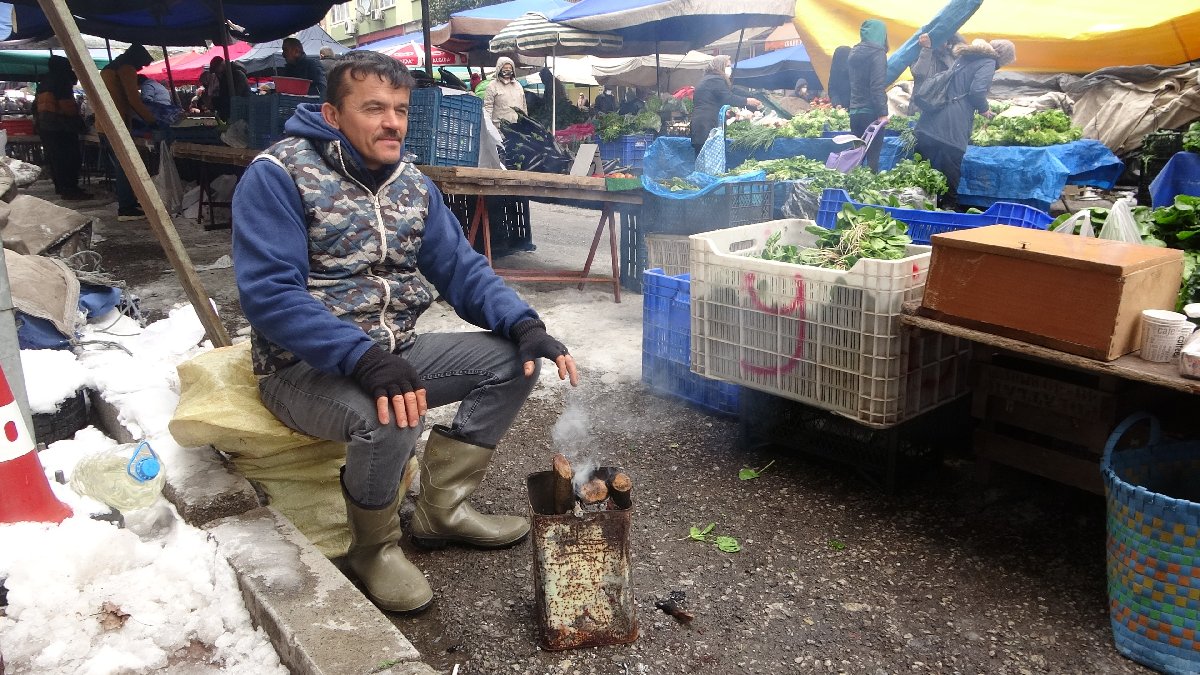 Pazarcılar buz tutan havada tezgahlarını kurarak müşteri bekledi. Soğuk havadan korunmak içinse teneke içinde ateş yakarak ısınmaya çalıştı. Bazısı getirdiği odun ve kömürü yakarken bazısıysa meyve sebze kasalarını parçalara ayırarak ateşe verdi.
