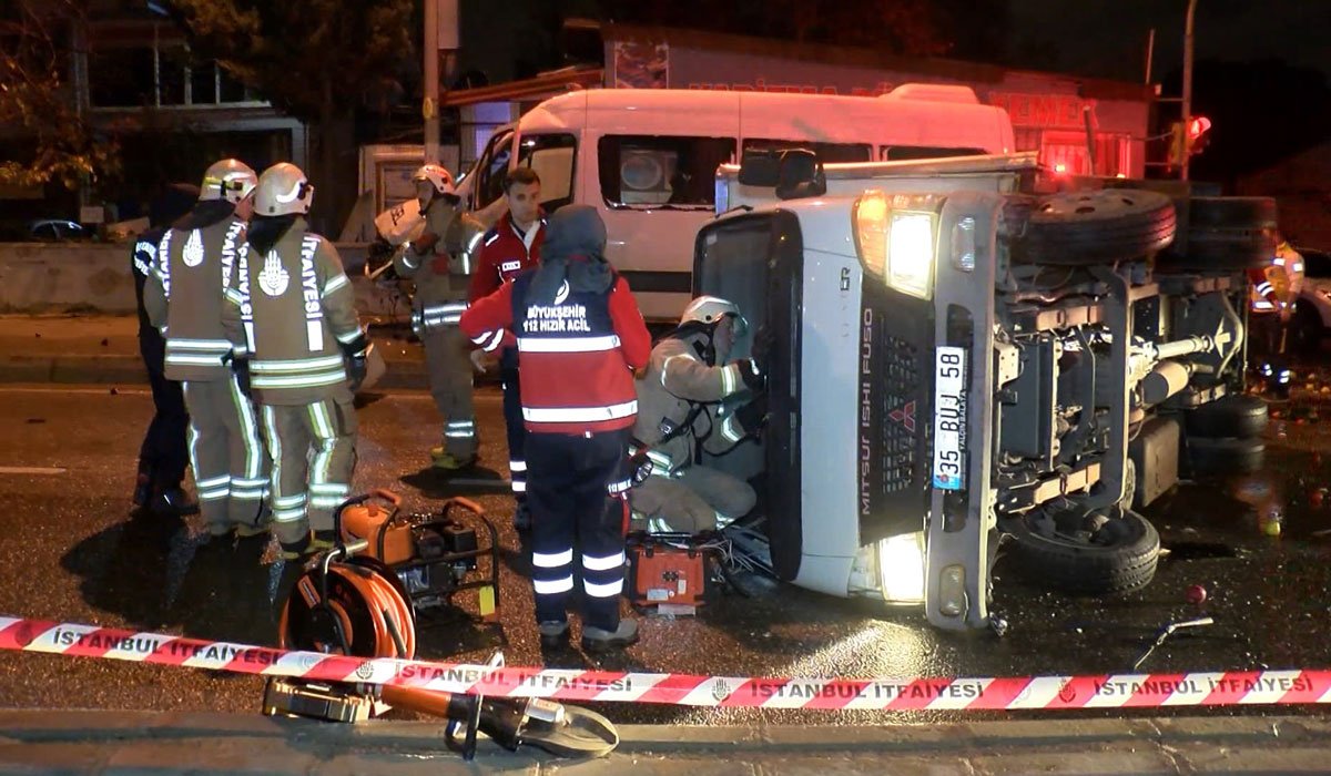 Çarpışmanın etkisiyle kamyonet yola devrilirken minibüs kaldırıma çıktı. Kazada kamyonet sürücüsü Erdoğmuş araç içerisinde sıkışırken, kamyonette bulunan Hikmet Derviş ile minibüs şoförü Murat Zeki Ocakçı yaralandı.
