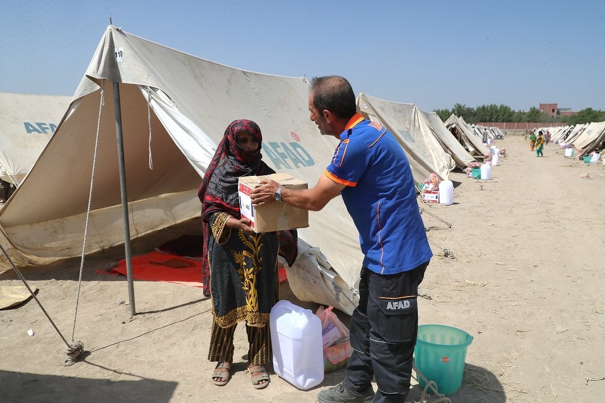 Türkiye, sel afetlerinin 33 milyondan fazla kişiyi etkilediği Pakistan'a 25 bin 812 aile tipi çadır, 409 bin 125 gıda kolisi ve temizlik malzemesi, 48 bin 575 sıcak yemek, 38 bin 796 battaniye, yatak, yastık, 6 bin 58 birim mutfak seti, 39 bin 329 birim giyim malzemesi, halı, 2 milyon 235 bin 168 birim tıbbi malzeme, 2 mobil sağlık ünitesi ve kampı, 50 motorlu bot gönderdi.