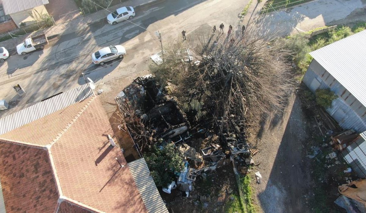 Yangının boyutu ise gündüz saatlerinde ortaya çıktı. Evin içerisindeki tüm eşyaların yandığı gözlenirken, küle dönen ev havadan drone ile görüntülendi.