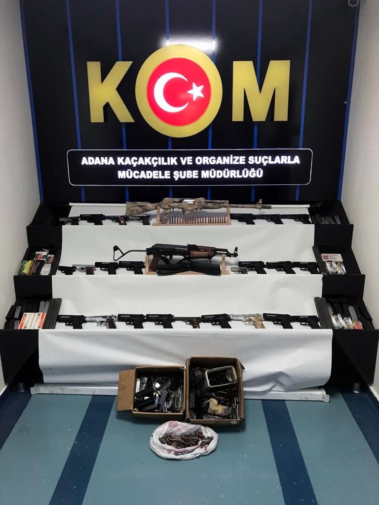 Şüphelilere ait çiftlik evinin bahçe duvarındaki taşların altından da bezle sarılıp, poşetlenmiş tabanca ve silah yapımında kullanılan malzeme çıktı. Şüphelilerin tek tek taşındığında suç unsuru sayılmayan silah parçalarını Adana'da birleştirdikleri ve satışını yaptıkları belirlendi. Adana Adli Tıp Biriminde sağlık kontrolünden geçirildikten sonra emniyete götürülen şüphelilerin sorgusunun sürdüğü bildirildi. DHA