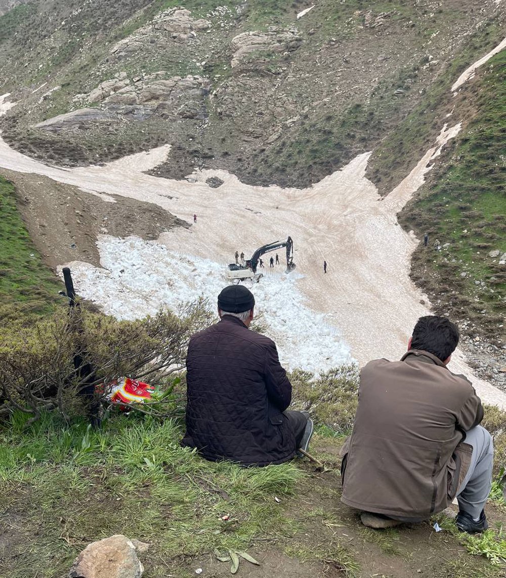 Zorlu arazi şartlarında çok sayıda kişinin katıldığı arama çalışmalarında bir iş makinesi de kullanılıyor. Şemdinli Belediye Başkanı Tahir Saklı da arama çalışmalarının sürdüğü bölgeye gelerek çalışmaları izledi. (DHA)