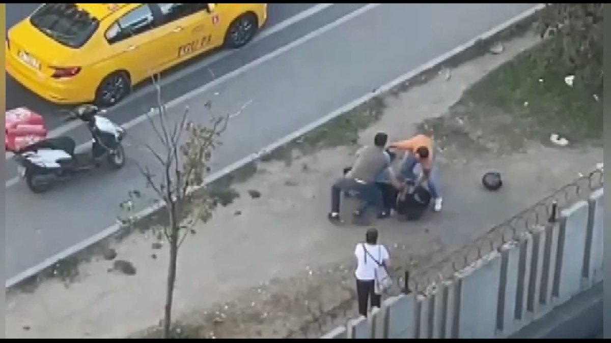 Kavga anları cep telefonu kamerasına saniye saniye yansıdı. Görüntülerde, motokurye ile diğer sürücünün kavga ettiği, ikilinin kavgaya yerde devam ettikleri ve çevredeki diğer sürücülerin araya girip olayı sonlandırdığı görülüyor. (DHA)