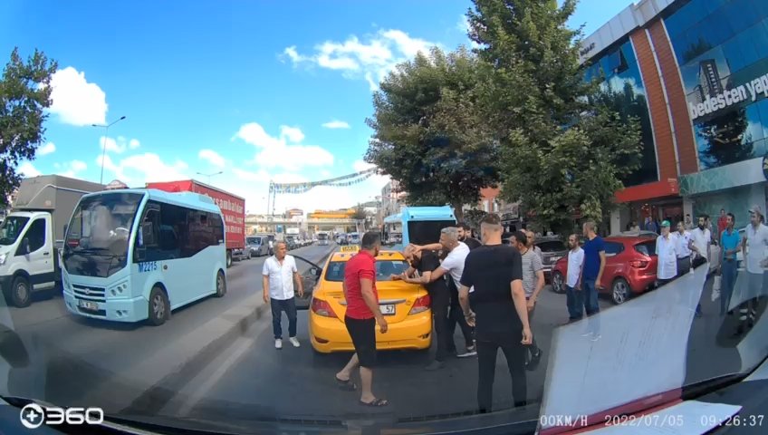 Kadına şiddet olayı trafikteki bir başka sürücünün araç kamerasına yansıdı. Görüntülerde kendisine darbeden kişiden kaçmaya çalışan kadının, taksiye bindiği görülüyor. Saldırganın arkasından taksiye gelerek kadına aracın içerisinde saldırmaya devam ediyor. Kamera kaydında çevredekilerin adama müdahale ederek, tekme tokat dövdüğü de görülüyor. (DHA)