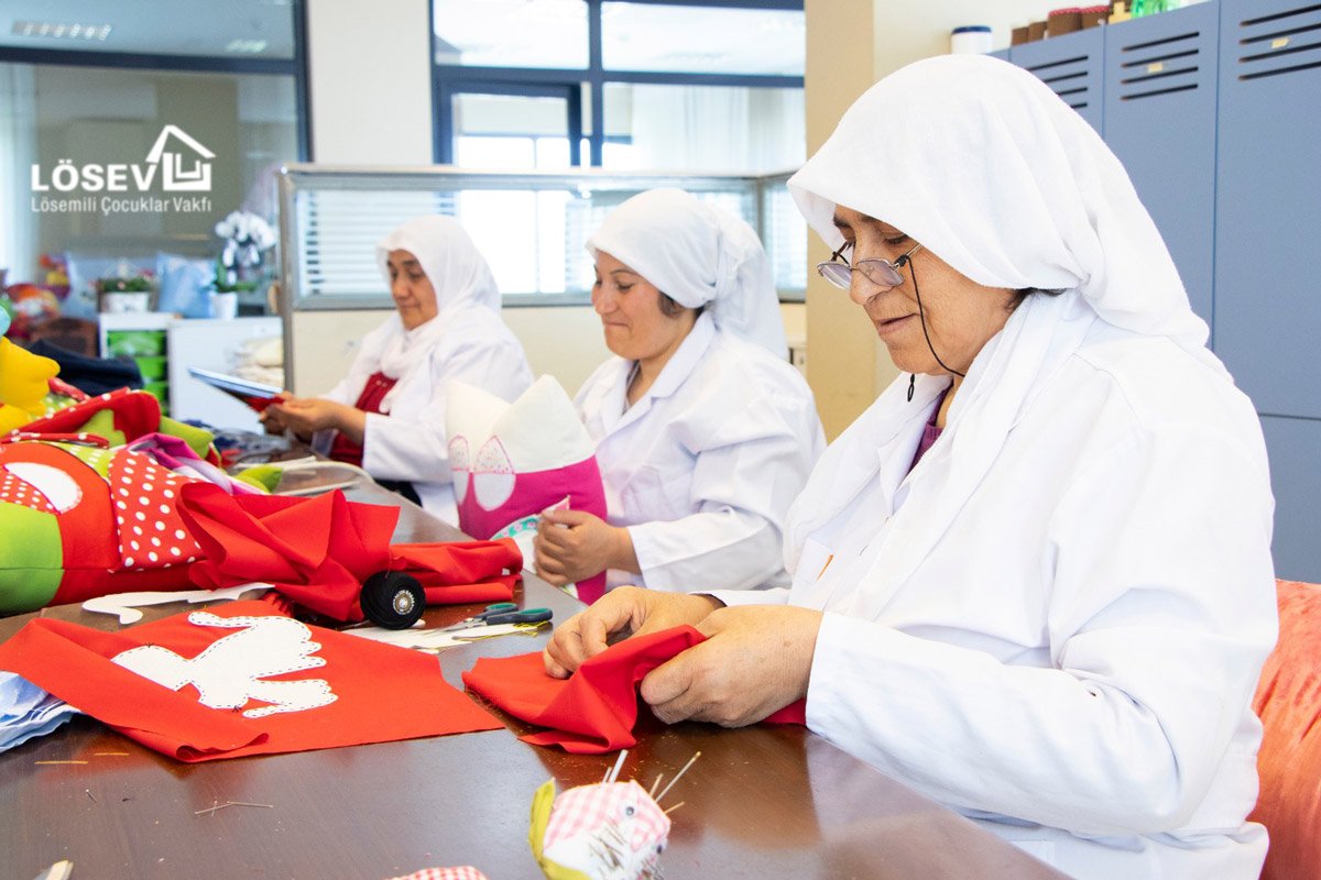 Lösemi hastası çocukların anneleri, atölyelerde üretim yaparak hem hayata bağlanıyor, hem kendi bütçelerine hem de miniklerin tedavilerine katkı sağlamanın mutluluğunu yaşıyor.Annelerimizin ürettiği birbirinden güzel ve doğal ürünler LÖSEV web sitesinde satılarak hem sağlık kazanılıyor, hem de geliri hastanelerde yatarak tedavi gören lösemili çocukların tedavi giderlerine ve parasız eğitimlerine aktarılıyor. Hep şunu söyleriz, lösemili çocuklarımızın anneleri bizim başımızın tacıdır. Bu yavrularımızın çektikleri acılar, sıkıntılar, hiçbir şekilde tanımlanamaz. Hiçbir şey de bunları unutturamaz.