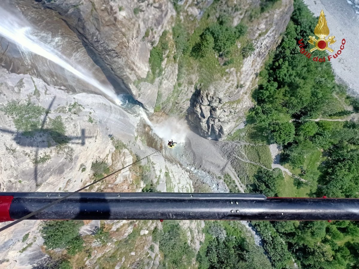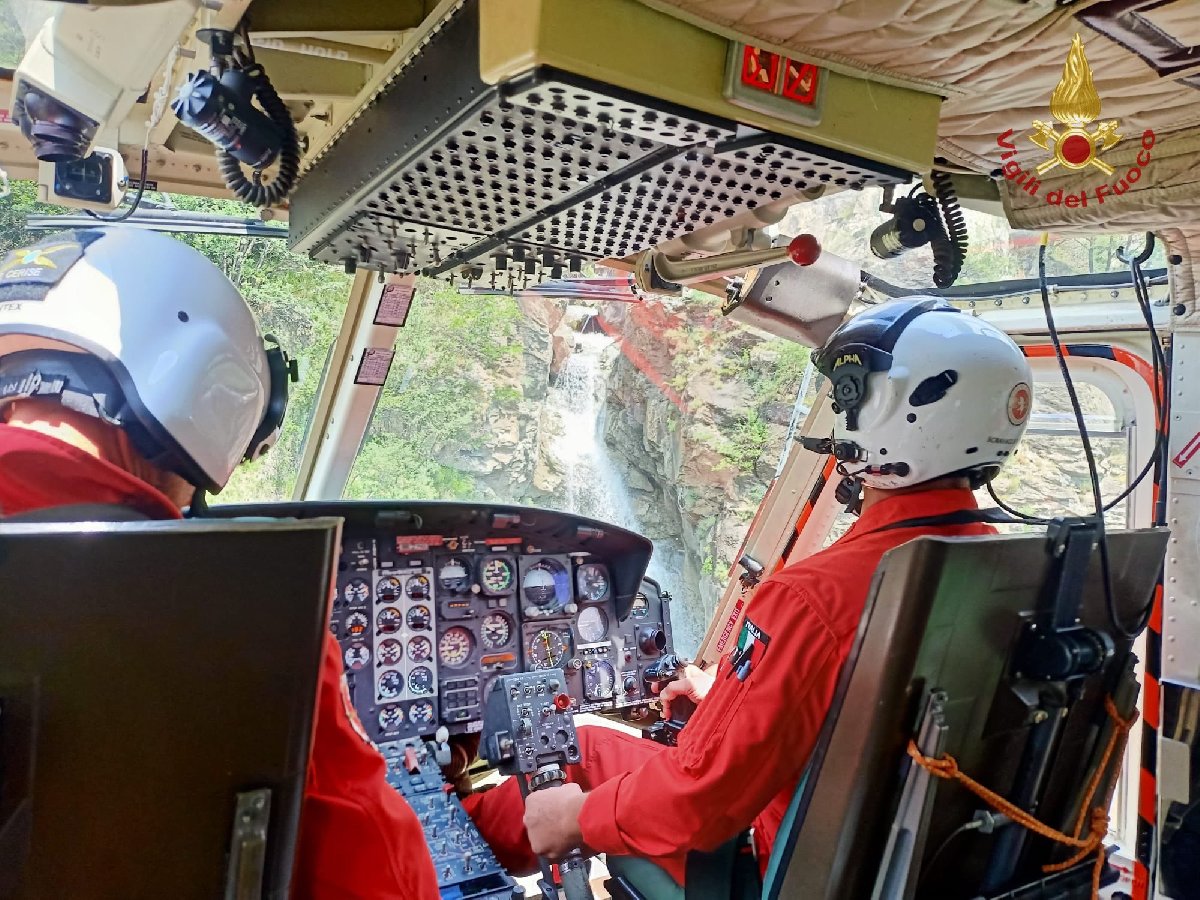 İtalyan itfaiyesi Vigili del Fuoco, bölgeye helikopterle intikal etti.