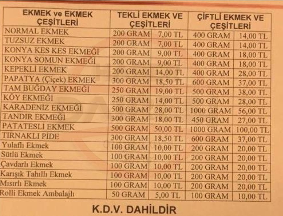 Zam öncesi 6 liraya satılan 200 gram ekmeğin fiyatı 7 liraya yükseltildi.