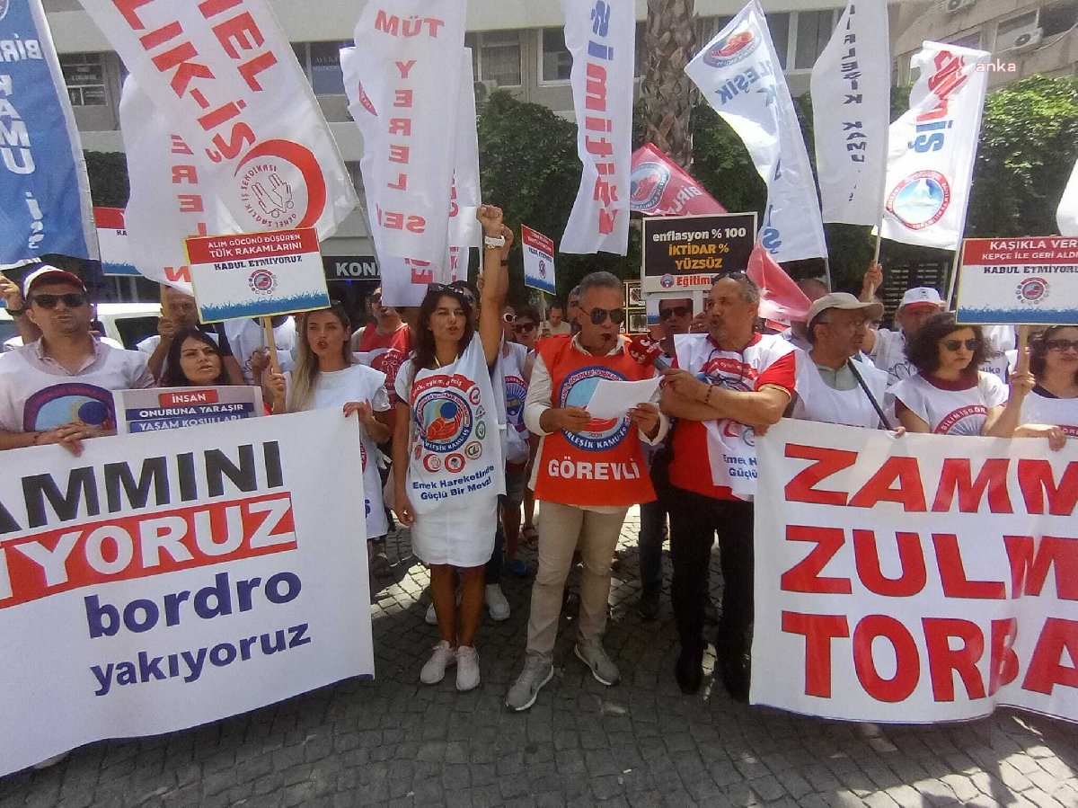 Ülke genelinde maaş zamlarını protesto etmek için alanlara çıkan Birleşik Kamu-İş Konfederasyonu’na bağlı sendika üyeleri, İzmir’de bordro yakma eylemi yaptı.