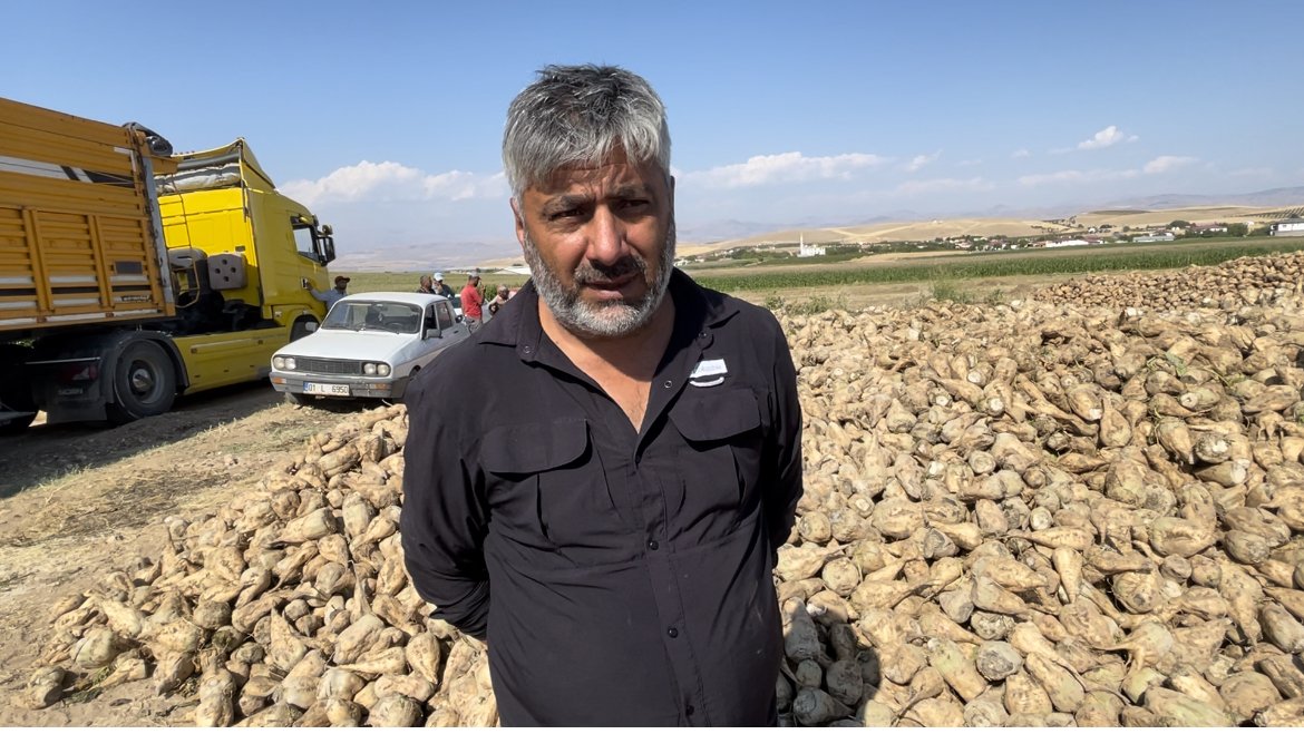 Buradan 4-5 bin alan ekili yer var, Elazığ Şeker fabrikasının yüzde 50’sini bu bölge karşılıyor. Geçen yıl da su sorunumuz olmuştu bu yıl da kanal temizliği yapılmadı, hatlarda patlaklar oldu pancarımıza su veremedik. 7-8 ton pancar alacağımız yerlerden 3-4 ton pancar alabildik.”