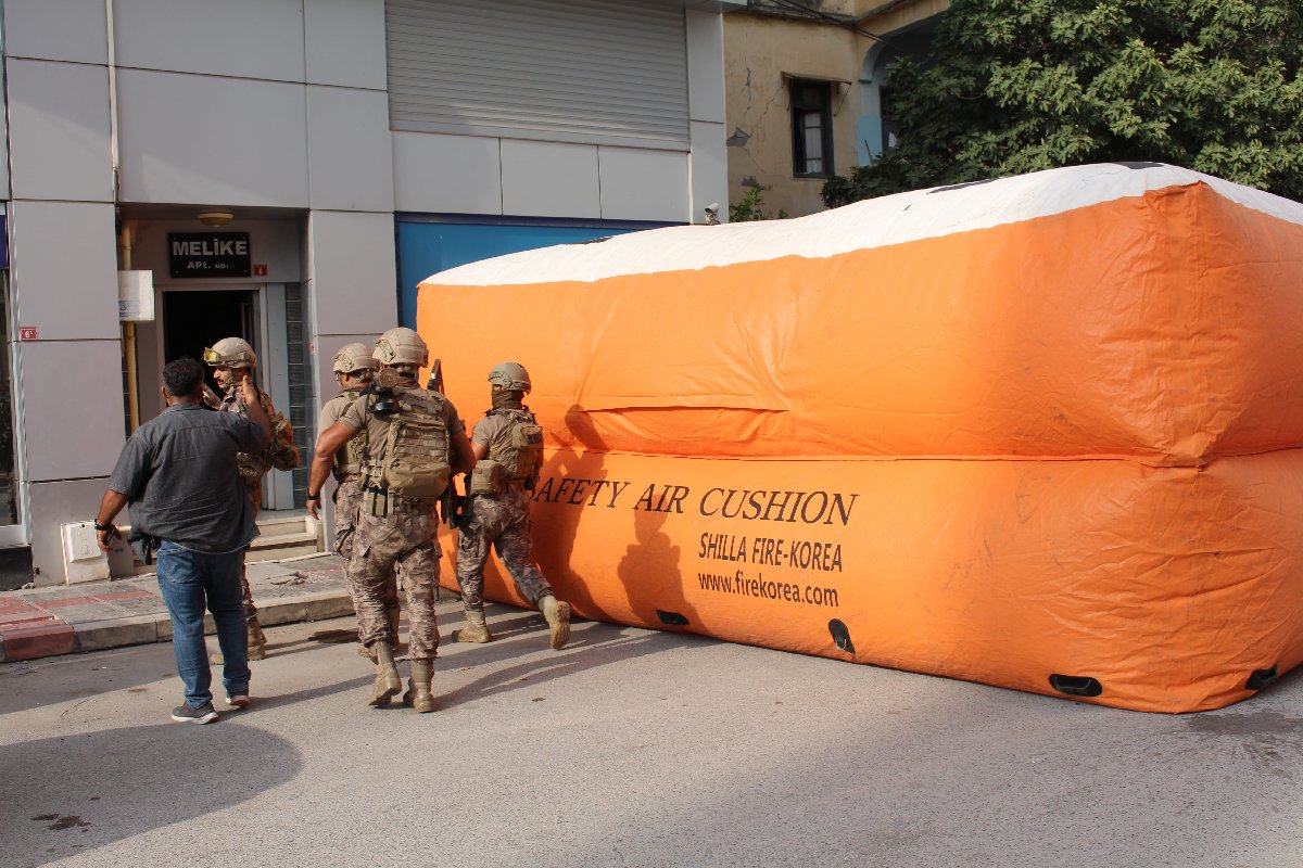 Ü.N'nin yardım çığlıkları üzerine olay yerine polis, itfaiye ve sağlık ekipleri sevk edildi. İtfaiye ekipleri zemine şişme yatak yerleştirirken, polis ekipleri de F.N'yi ikna etmeye çalıştı.