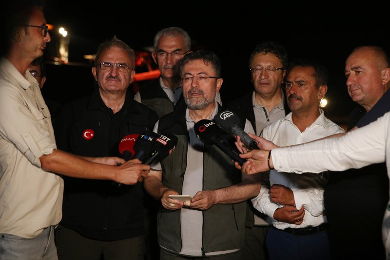 Tarım ve Orman Bakanı İbrahim Yumaklı'nın koordinasyonunda 8 uçak, 26 helikopter, 296 arazöz ve iş makinesinin yanı sıra 1328 personelle yangına müdahale edildiğini belirten Erdoğan, "800'ü ormanlık olmak üzere toplam 1500 hektar alanın etkilendiği yangının can kaybına yol açmaması için gerekli tüm tedbirler alındı. Hızı zaman zaman 70 kilometreye ulaşan şiddetli rüzgar işimizi zorlaştırsa da yangının yayılması durduruldu. İnşallah kısa sürede de kontrol altına alacağız." diye konuştu.