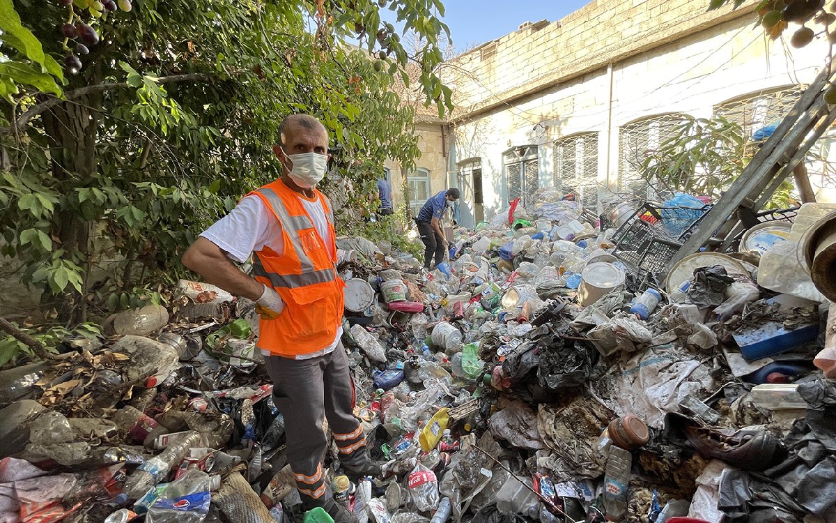 Evin ve bahçenin içerisinde bulunan çöpler, belediye ekiplerince temizlenmeye çalışılıyor.