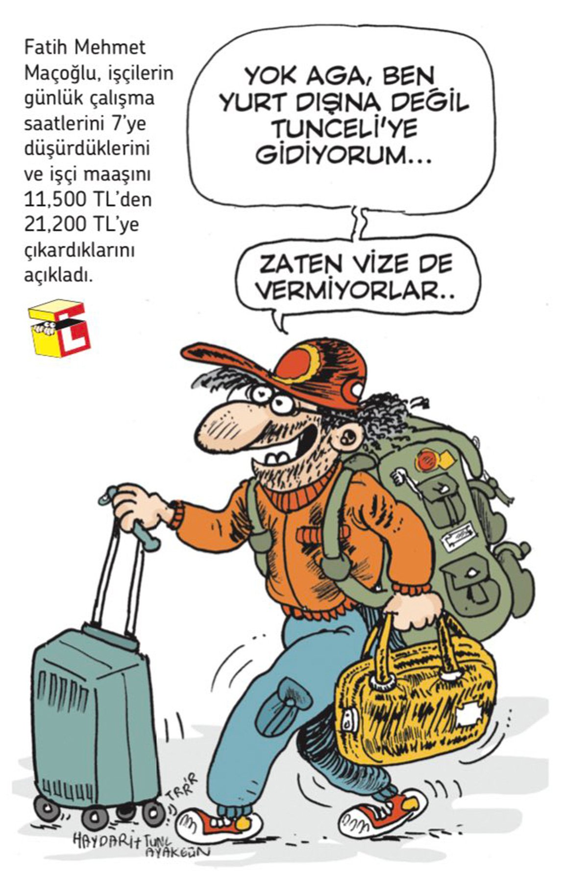 Sıra dışı bir yönetim ve hizmet anlayışı ile zaman zaman gündeme gelen Tunceli Belediye Başkanı Fatih Mehmet Maçoğlu, en düşük işçi maaşına yüzde 85 zam yapmasıyla büyük dikkat çekmişti. Mizah dergisi LeMan o dönem “Fatih Mehmet Maçoğlu, işçilerin günlük çalışma saatlerini 7’ye düşürdüklerini ve işçi maaşını 11 bin 500 TL’den 21 bin 200 TL’ye çıkardıklarını açıkladı” yazısı ve konuşma balonunda “Yok aga, ben yurt dışına değil Tunceli’ye gidiyorum. Zaten vize de vermiyorlar” diyen bir gencin karikatürüyle başkanı kapağına taşımıştı.