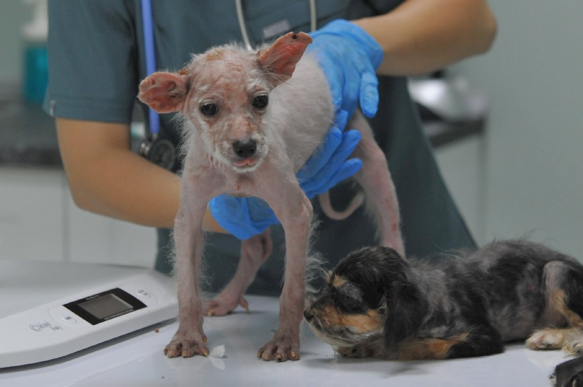 "Çok kötü durumdalar. Bir tanesi çok ciddi derecede uyuz. Öbürlerinin tüy ve deri sağlığı tamamen bozulmuş. 5 yavrumuzda ise inanılmaz bir pire enfastasyonu vardı. Her yerleri simsiyahtı. Hemen iç-dışlarını yaptık taradık. Var olanları biraz döktüler, rahatladılar. Bundan sonraki süreçlerde tek tek kontrollerini yapmaya devam edeceğiz. İlk geldiklerinde sadece acil müdahale yaptık. Minimum 14 gün karantina süreci devam edecek. Ama uyuzlu hastalarımız için bu süre uzayabilir. Asıl ciddi durumda olanlar o 3 yavrumuz. Büyük ihtimalle leishmania olabilirler. Emin değiliz, test yapacağız. Bu hastalık bir kan paraziti. Kötü bakım koşullarında olan hayvanlarda, o mu değil mi bakacağız. Doğru zamanda doğru tedavi yapılmazsa maalesef her hastalık ölümcül olabiliyor." (DHA)