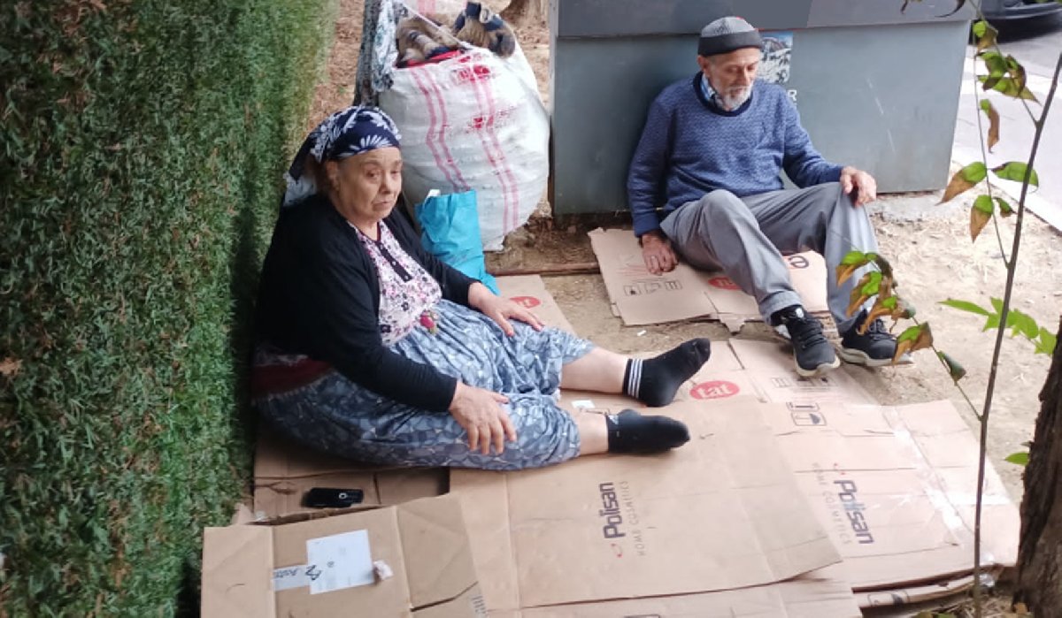 Ev sahibi tarafından dün gece evden çıkartılan yaşlı çift, geceyi Üsküdar Kuruçeşme Parkı'nın hemen yanındaki kaldırımında kartonların üzerinde geçirdi.