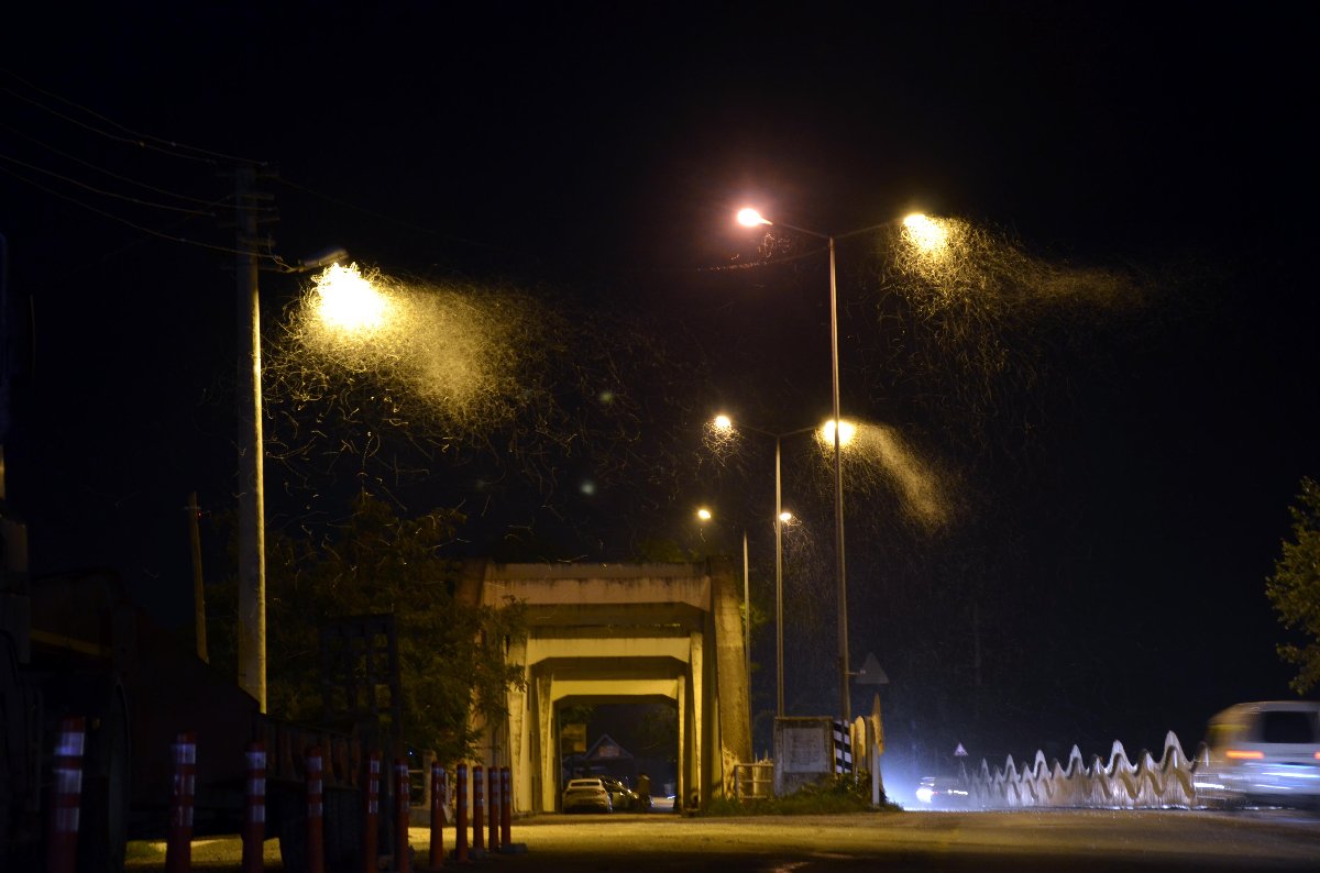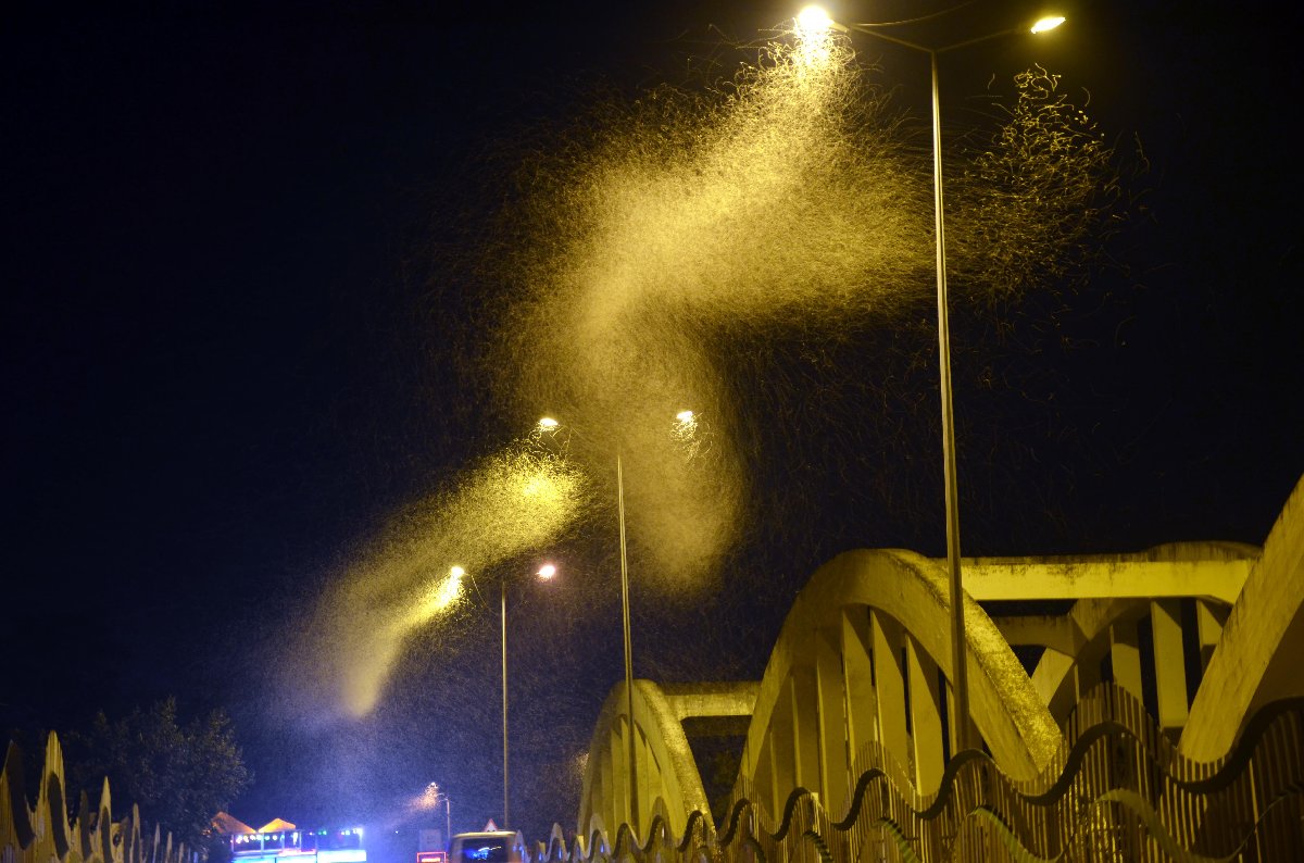 Köprünün üzerindeki sokak lambalarının etrafında dönen kelebekler, yoldan geçen araçların ışıklarına doğru da hareket etti. Bu etkileyici manzara, köprü üzerinde ilerleyen araçların zorluk yaşamasına neden oldu. Bisiklet ve motosiklet sürücüleri de bu doğa olayı yüzünden ilerlemekte zorluk çekti.