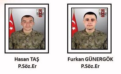 * Pençe-Şimşek Harekâtı bölgesinde 9 Temmuz 2023 tarihinde bölücü terör örgütü mensuplarınca açılan taciz ateşi sonucu kahraman silah arkadaşlarımız P.Söz. Er Hasan Taş ve P.Söz. Er Furkan Günergök ağır yaralanarak derhal hastaneye sevk edilmiş ancak, yapılan tüm müdahalelere rağmen kurtarılamayarak şehit olmuştur.