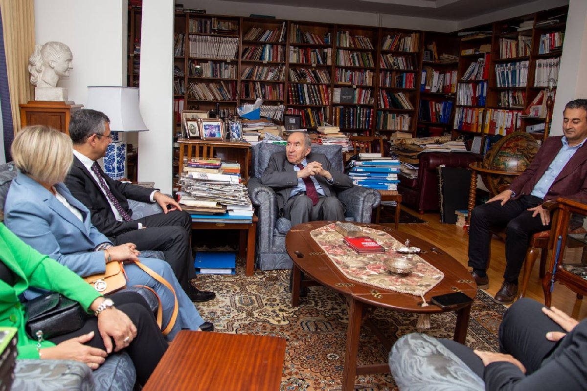 CHP Genel Başkan adayı Özgür Özel, partinin eski genel başkanlarından Altan Öymen'i Beşiktaş'taki evinde ziyaret etti. Yaklaşık 1,5 saat süren ziyaretin ardından Öymen ve Özel, basın mensuplarına açıklamalarda bulundu.