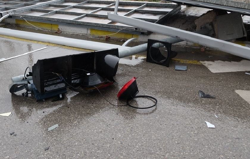Çorum'da yağmurla birlikte etkili olan fırtına nedeniyle billboardlar ve trafik sinyalizasyon direkleri devrildi.