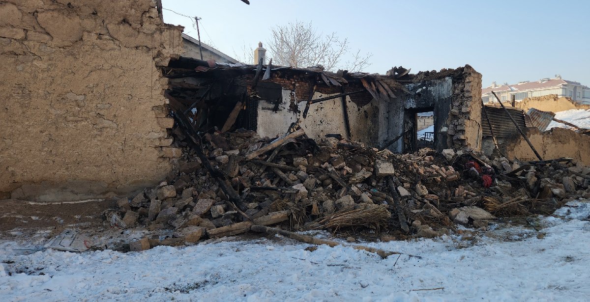 İtfaiye ekiplerinin yangına müdahalesi sırasında, evin çatı katı çöktü. Söndürme çalışmalarının ardından, olay yerine gelen iş makineleriyle evin enkazı kaldırıldı.