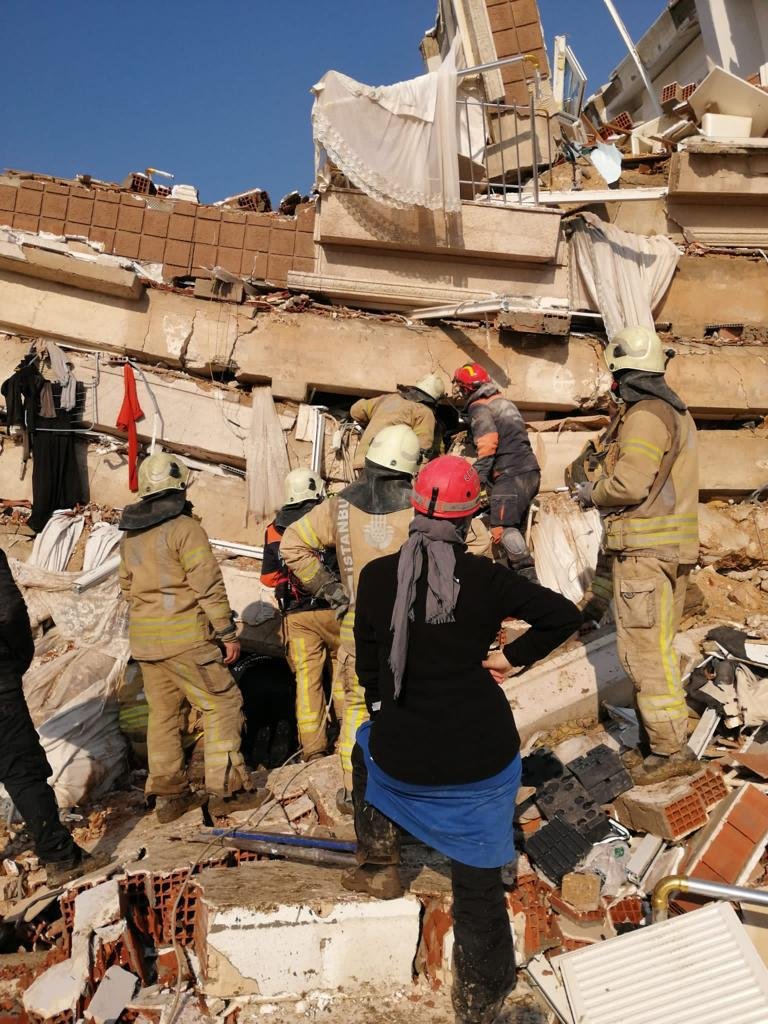 'Kızım ne olur biraz ileride enkazımız var. Torunum orada. Enkazdan sesler alıyoruz bize yardımcı olur musunuz ?' dedi. Ben de Abdülkadir kardeşimize söyledim hemen ekibi toparlayıp enkaza doğru yürüdük. Vardığımızda enkaza hızlı bir şekilde müdahale ettik. Birkaç bölgeden ses aldık. Ali'nin sesini aldık. Sabaha kadar çalışmalarımız bu şekilde sürdü. Ali'ye ilk ulaştığımızda Abdülkadir elini tuttu.