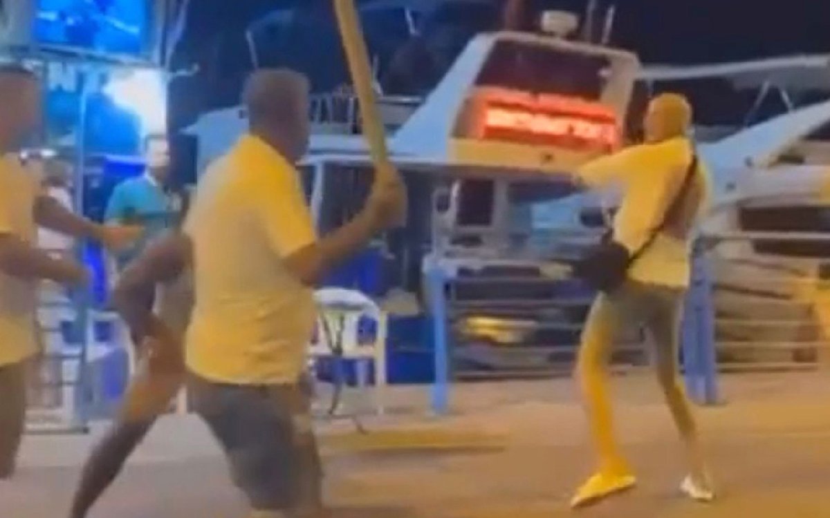 Bunu reddeden tatilci ile tekne çalışanları arasında küfürleşme yaşandı. Olayın kavgaya dönüşmesi üzerine gurbetçiye; gezi teknesi çalışanı ve sahibi 6 kişi sopalarla saldırdı. Caddeden geçen turistlerin de izlediği kavga, cep telefonu kamerasıyla kayda alındı.