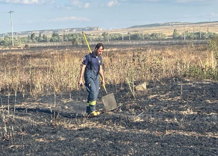 Mahalle sakinlerinin de desteği ile ekipler, yangını söndürdü. 60 dönüm alan zarar gördü. İncelemede, yangına direğe konarak, akıma kapılan bir kuşun yol açtığı belirlendi. Soruşturma sürüyor. (DHA)