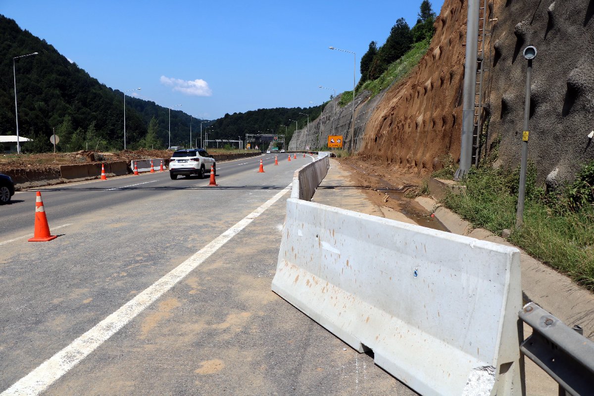 Ekipler, 200 metrelik bölümü tedbir amaçlı kapatılan bölgede çalışma başlattı. Heyelan nedeniyle yola inen toprak temizlendi.