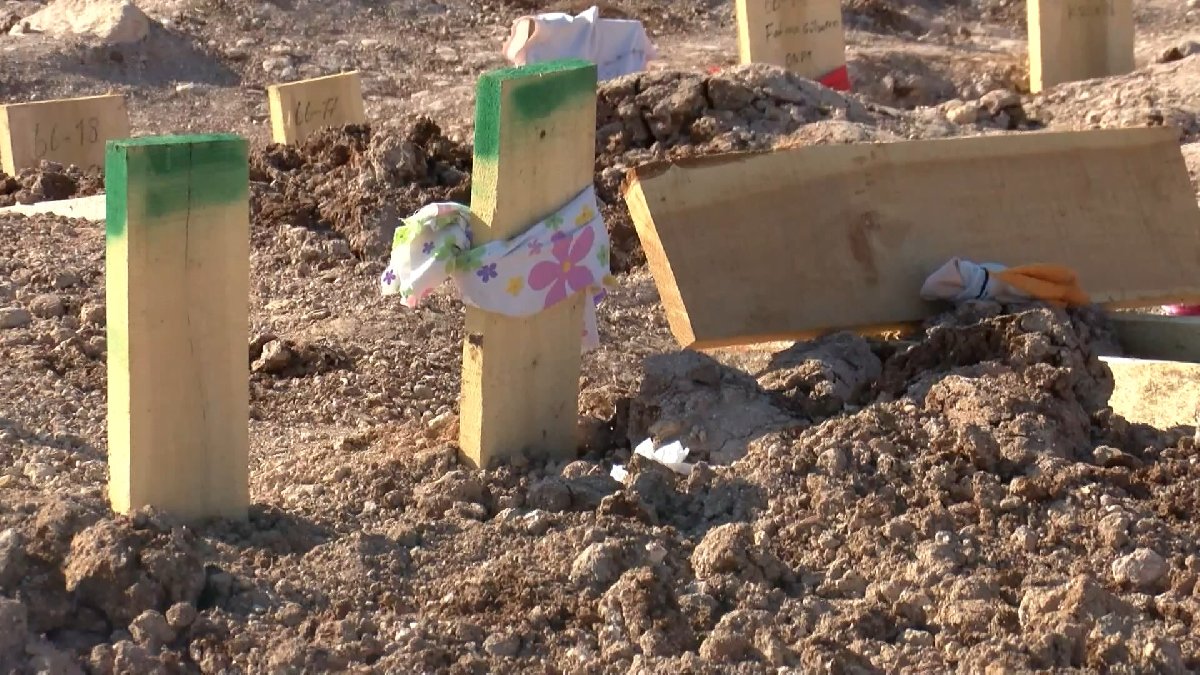 Hayatını kaybedenlerin yakınları mezar yeri belli olması için mezar başına çeşitli eşyalar astı.