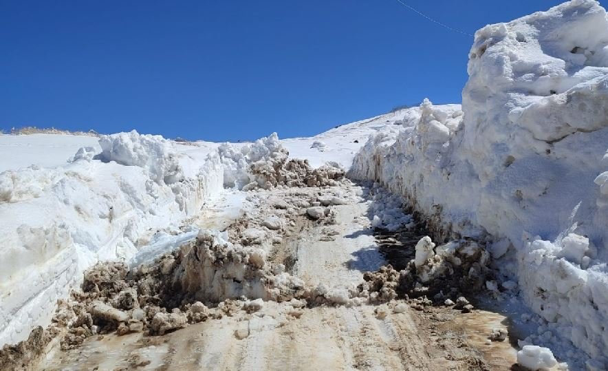 Van'ın Saray ilçesinde, kış boyunca biriken kar kütleleri temizlenirken, bazı noktalarda 3 metreyi bulan karlı yollarda çalışma yapılıyor.