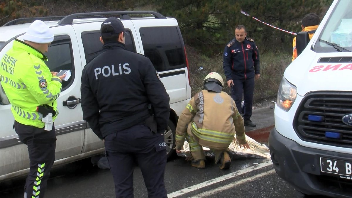 Bu sırada aynı yönde ilerleyen servis minibüsüyle çarpışan motosiklet, yerde sürüklenerek emniyet şeridinde bekleyen park halindeki aracın altına girdi.