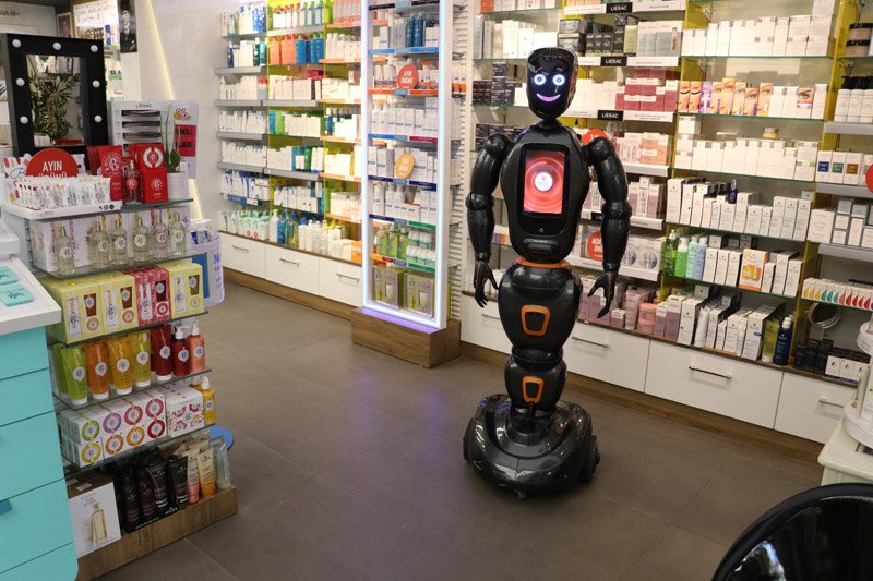 Eczaneye gelen müşterilerin sorularını algılayabilen robot, firma tarafından yüklenen bilgiler dahilinde bunlara cevap veriyor.
