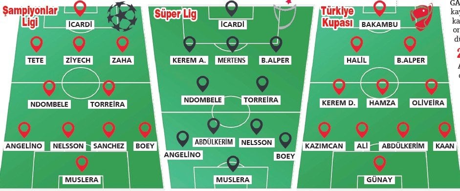Mauro Icardi’nin tapusunu alarak işe başlayan yönetim, sol beki Angelino ile doldurdu. Hücum hattında ise kariyer ve potansiyeli bir arada kullanıldı. Zaha, Ziyech ve Tete ile Icardi’nin etrafı güçlendirildi. Son dokunuş da savunmaya Sanchez, orta alana Ndombele ile kondu. Okan Buruk artık bazı maçlarda üçlü savunma oynama opsiyonuna da sahip olabilecek. Cimbom artık Şampiyonlar Ligi-Süper Lig-Türkiye Kupası’nda değişik kadrolar kullanabilecek seviyede.